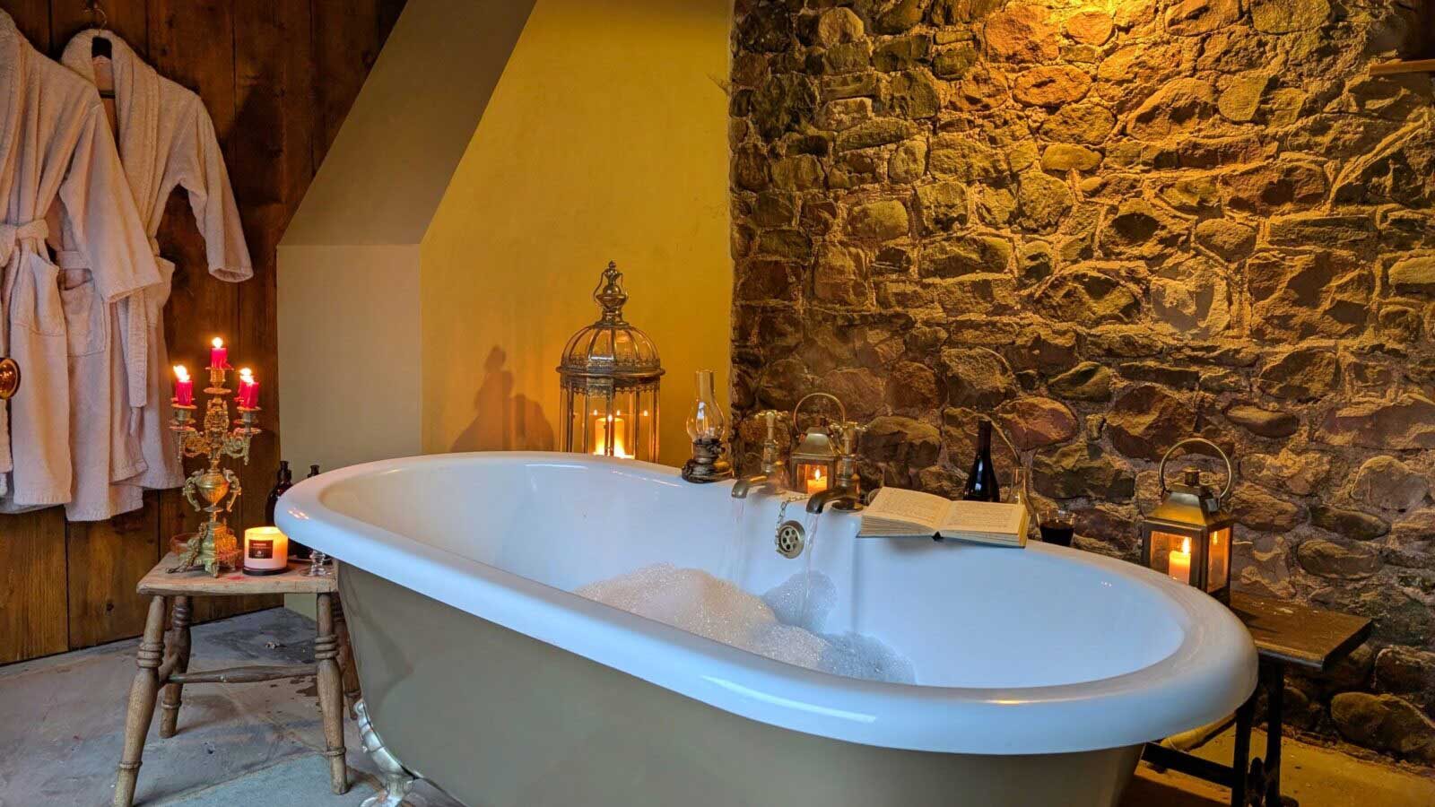 Private hot tub or outdoor bath cabin • Secluded countryside setting • Designed exclusively for couples