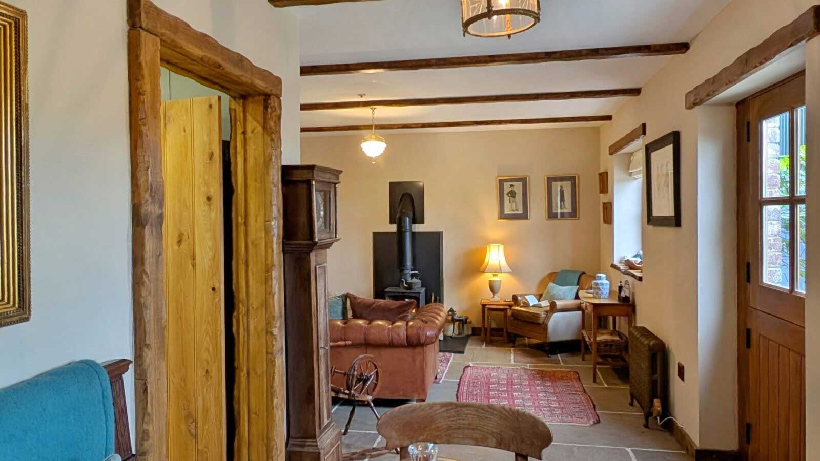Original features run throughout, from exposed beams and stone floors to thick walls that hold a sense of the building’s past. Details reflect the heritage of the estate and its surroundings. Antique furniture and vintage pieces have been carefully chosen to sit comfortably within the space, creating interiors that feel layered, lived-in and true to their setting.
