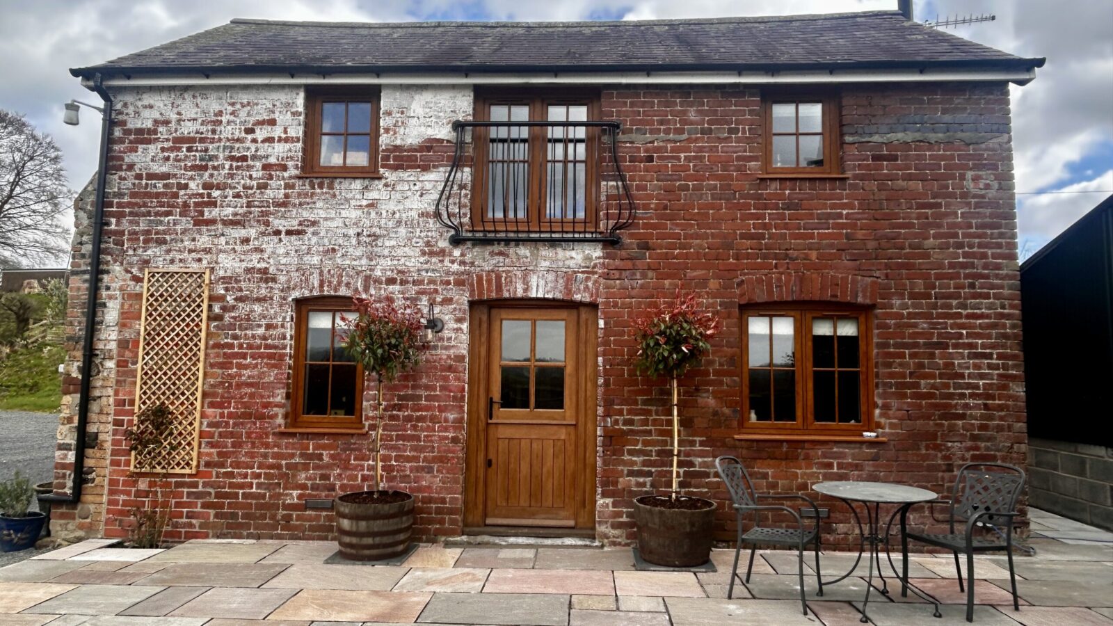 Private patio furniture with views towards the river and across the valley